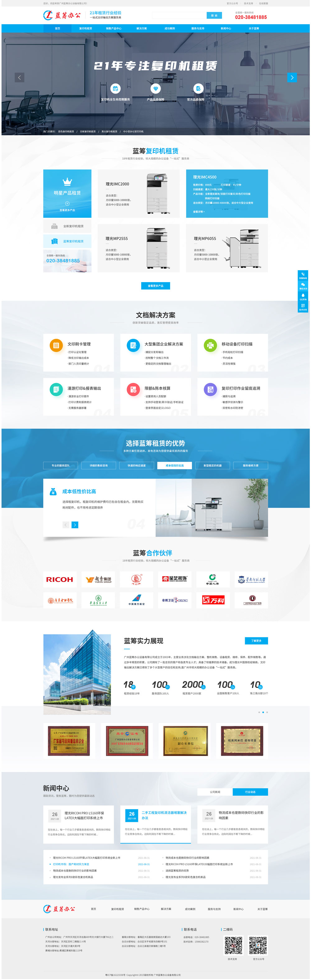 廣州藍籌辦公設備有限公司成立于2003年,主營業務涉及文檔輸出方案、整機銷售、設備租賃、維修、保養、配件銷售等。通過多年艱苦的積累,公司擁有了一批忠實的客戶和各類專業人才;具備了較雄厚的技術儲備,成為理光中國授權經銷商,文印輸出解決方案已得到了多個大型客戶的信任和支持,是廣州市較大規模的辦公設備“一站式”...