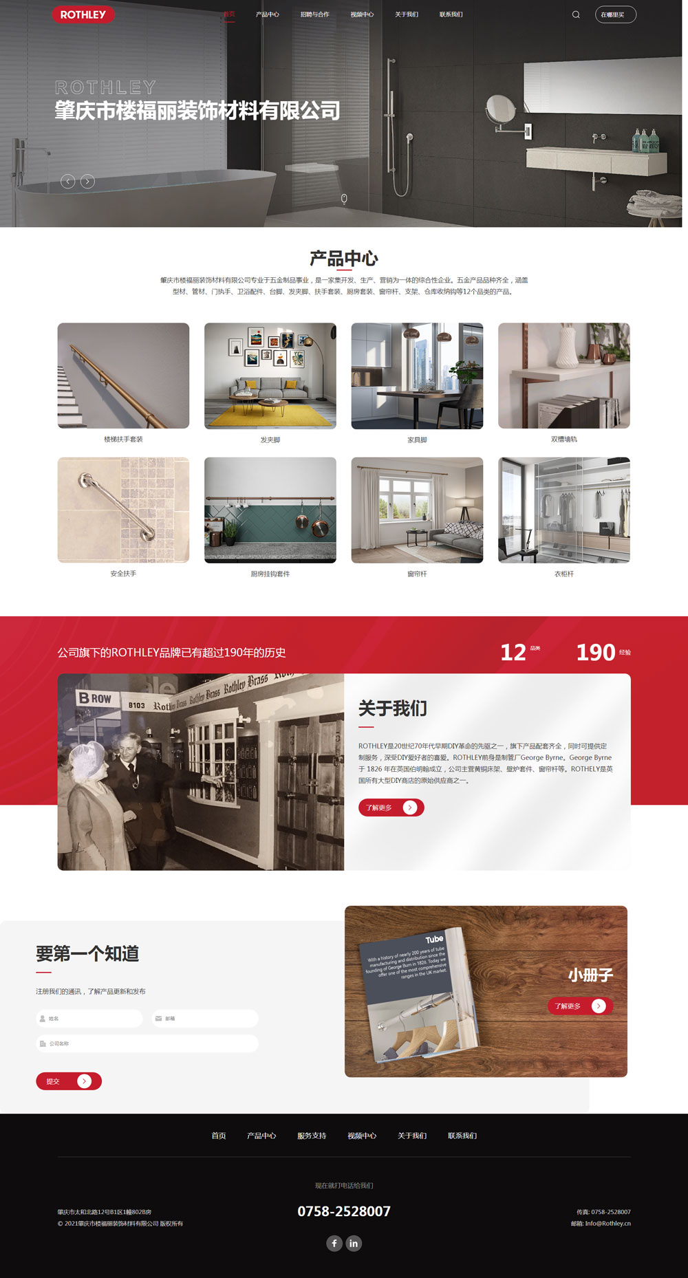 肇慶市樓福麗裝飾材料有限公司是一家中外合資企業,公司的ROTHLEY品牌已有超過190年歷史。公司前身是制管廠George Byrne。George Byrne于 1826 年在英國伯明翰成立,公司主營黃銅床架、壁爐套件、窗簾桿等。當時正值工業革命的高峰期,隨著電力的引入公司開發了鋼管來容納公共建筑中使用的電線。1934年推出的瑪麗皇后號游輪(Queen-Mary)也使用到了公司的管材。多年來ROTHLEY的主營類目除了管材外,同時也生產各種五金金屬產品,包括有門執手、櫥柜拉手、窗簾桿頭、鉸鏈、插銷和窗簾桿。現在ROTHLEY的主營產品已涵蓋12 個五金建材市場產品類別。我們的成功源于我們顧客至上的宗旨。從 1826 年的 George Byrne 到今天充滿活力的跨國公司,所有的經驗和知識加上對客戶需求的敏銳洞察力,為我們的長遠發展提供了寶貴的優勢。