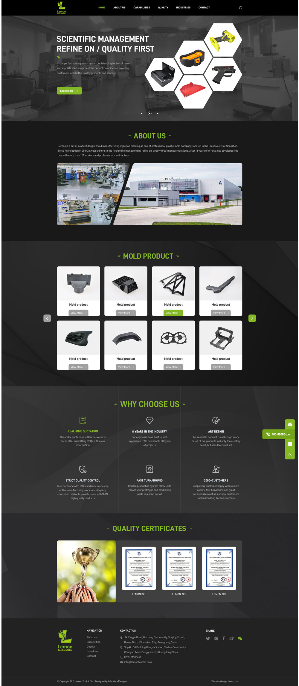 Lemon is a set of product design, mold manufacturing, injection molding as one of professional plastic mold company, located in the Chinese city of Shenzhen.