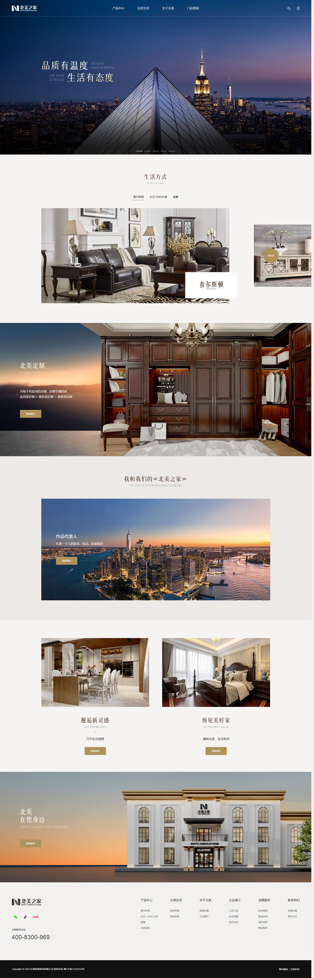 北美之家成立至今,旗下擁有傳統經典、現代經典兩大板塊,并融入整裝定制服務組成強大產品矩陣。迄今,品牌已在全國一二線城市開設近200家實體專營店(截止2023年12月統計),以一站式、高品質的全屋設計方案與高效率、高規格的整裝落地服務,回應中國高端消費群體對理想家居的孜孜以求,致力于營造高雅安適又切合個性化需求的家。