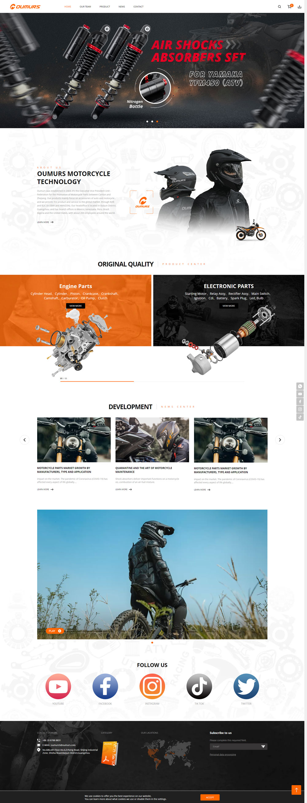廣州市歐馬機車科技有限公司成立于2003年,是廣東省浙江總商會執行副會長單位,主營汽車摩托車配件,通過B2B和B2C(在EBAY和AMAZON)面向全球市場提供產品和服務,總部設在廣州市白云區,在墨西哥、委內瑞拉、秘魯、巴西、阿爾及利亞和美國設有分公司,全球員工約200人。