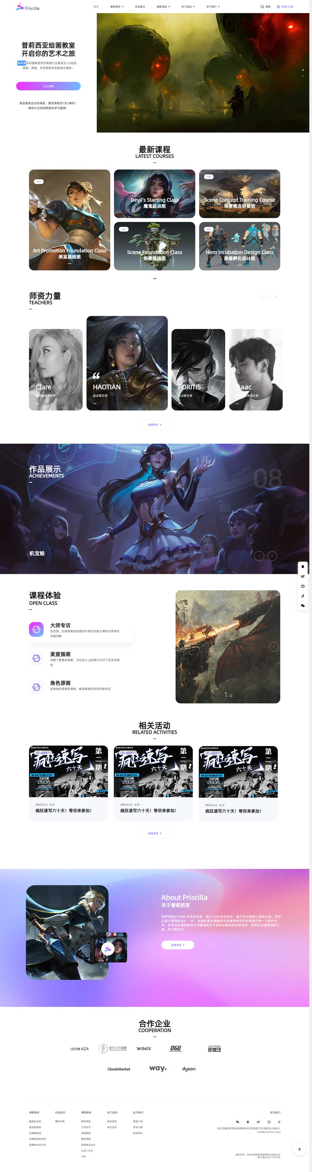 Priscilla普莉西亞是一個(gè)以先進(jìn)的西方藝術(shù)理念為基礎(chǔ)的新模式藝術(shù)工作室;它為世界知名藝術(shù)家提供了一個(gè)交流他們進(jìn)步思想的平臺。目前有超過 6000 名學(xué)生注冊,超過 2000名畢業(yè)生,數(shù)萬社交媒體上的關(guān)注者。您可以通過素描和設(shè)計(jì)、3D、動畫和美宣插圖的在線課程將您的技能提升到一個(gè)新的水平,所有這些課程都由才華橫溢的藝...