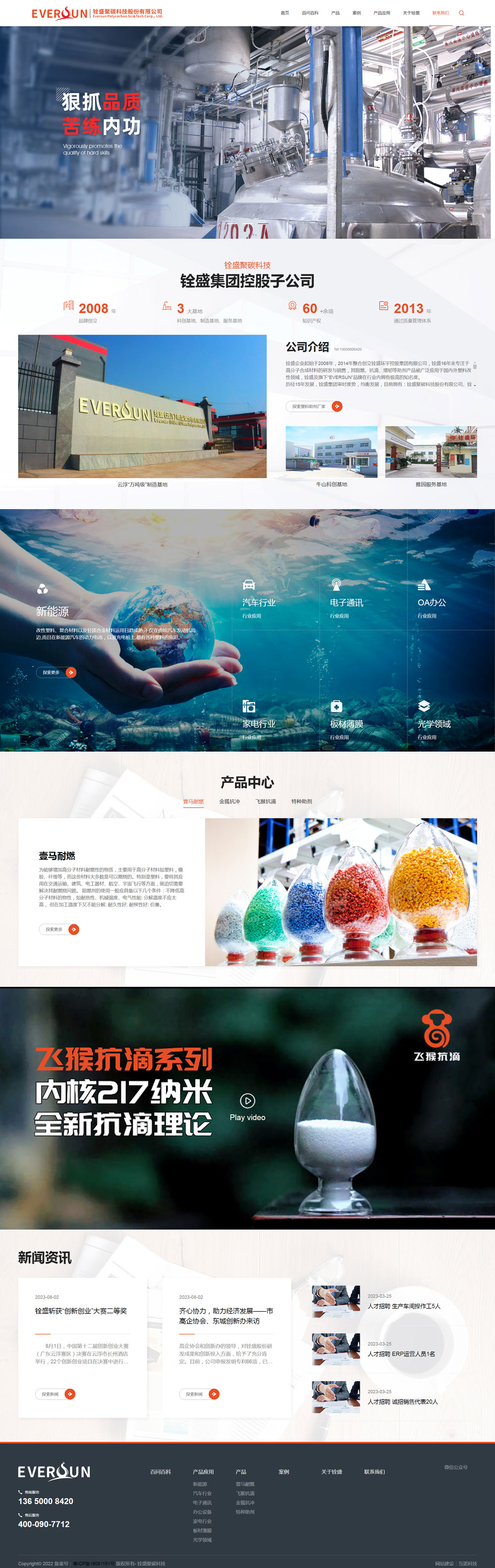 銓盛企業起始于2008年,2014年整合創立銓盛環宇控股集團有限公司,銓盛16年來專注于高分子合成材料的研發與銷售,其阻燃、抗滴、增韌等助劑產品被廣泛應用于國內外塑料改性領域,銓盛及旗下“EVERSUN”品牌在行業內擁有極高的知名度。