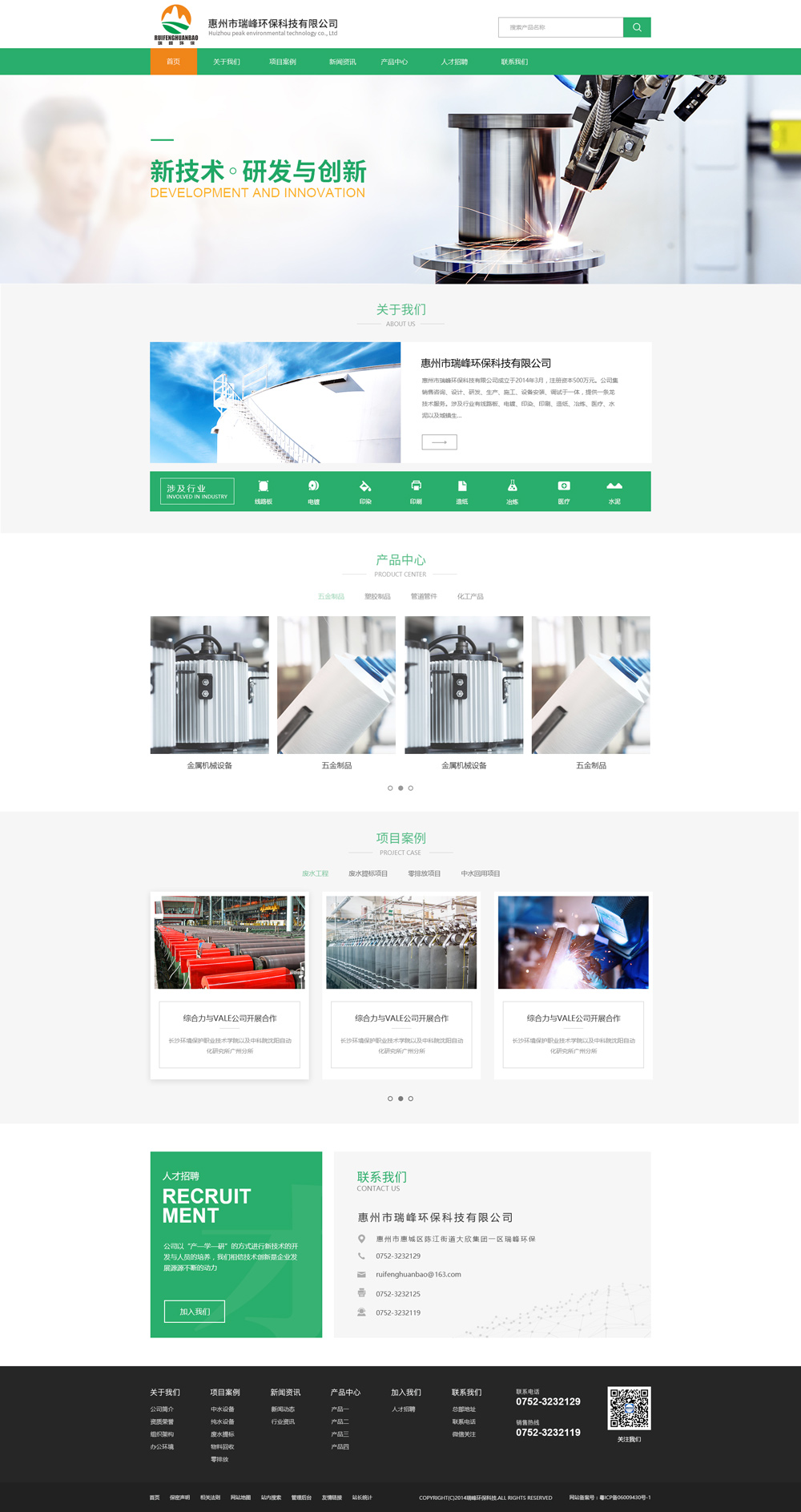 惠州市瑞峰環保科技有限公司成立于2014年3月,注冊資本500萬元。公司集銷售咨詢、設計、研發、生產、施工、設備安裝、調試于一體,提供一條龍技術服務。