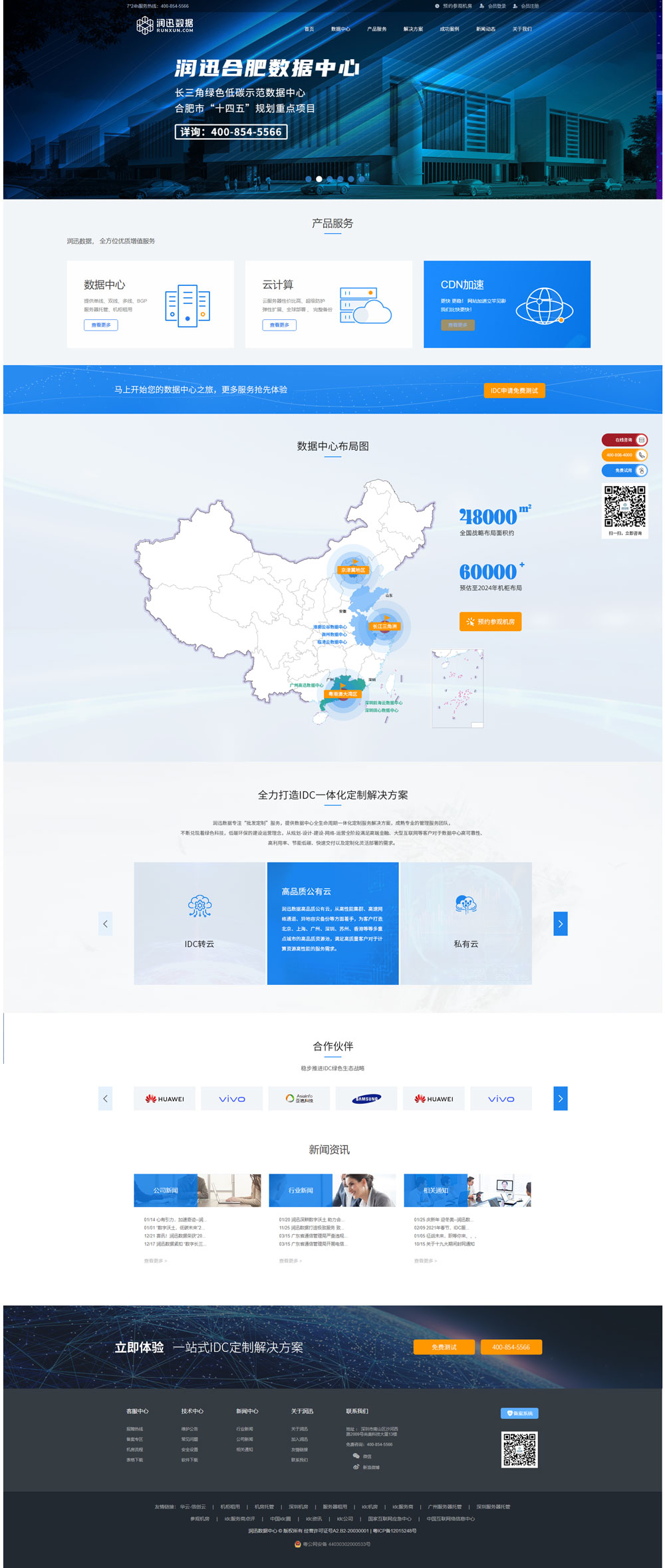潤迅數據作為一個高速發展的新基建第三方IDC服務商,擁有多家中立通信樞紐機房、豐富的網絡、帶寬及IPv4地址資源,具備“IDC、ISP”等多項運營資質。20+年的技術服務積淀,潤迅數據秉承全生命周期最優化理念,滿足企業未來業務需求,致力打造綠色低碳的數字經濟產業園區,專業為客戶提供IDC、ISP及電信增值業務,為國內多家運營商和眾多知名企業提供大規模、高質量、安全可靠的一站式IDC服務。 目前,潤迅數據在全球運營逾20個數據中心(含自建和代理),全國戰略布局面積約48萬平方米,規劃到2024年,總機柜數量將超過60000個。其中,自有數據中心包括在運營的潤迅合肥數據中心、深圳前海云數據中心和深圳田心數據中心等;規劃在建T3+標準的有臨港云數據中心、淮南云谷數據中心。