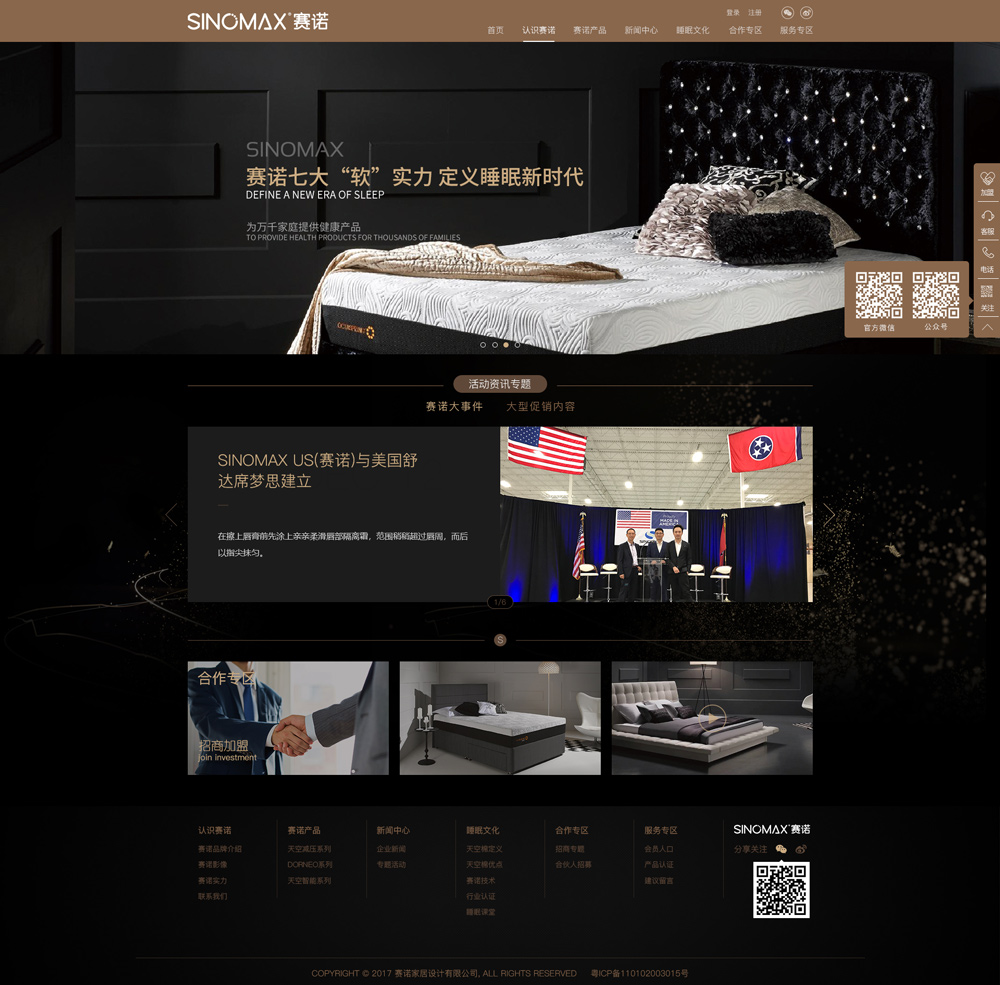 太空棉家居用品領導品牌SINOMAX賽諾隸屬于香港圣諾集團,SINOMAX賽諾以太空記憶棉為核心材質,致力于慢回彈健康產品的生產與銷售,是業內領先的慢回彈產品銷售商、制造商及分銷商。賽諾擁有中國和美國兩大研究中心,并獲得香港執業脊醫協會、賽諾中國健康睡眠與產品研究中心等多家權威機構科研技術支持,通過覆蓋中國大陸及港澳臺地區的近500個銷售點,為萬千家庭提供健康產品。