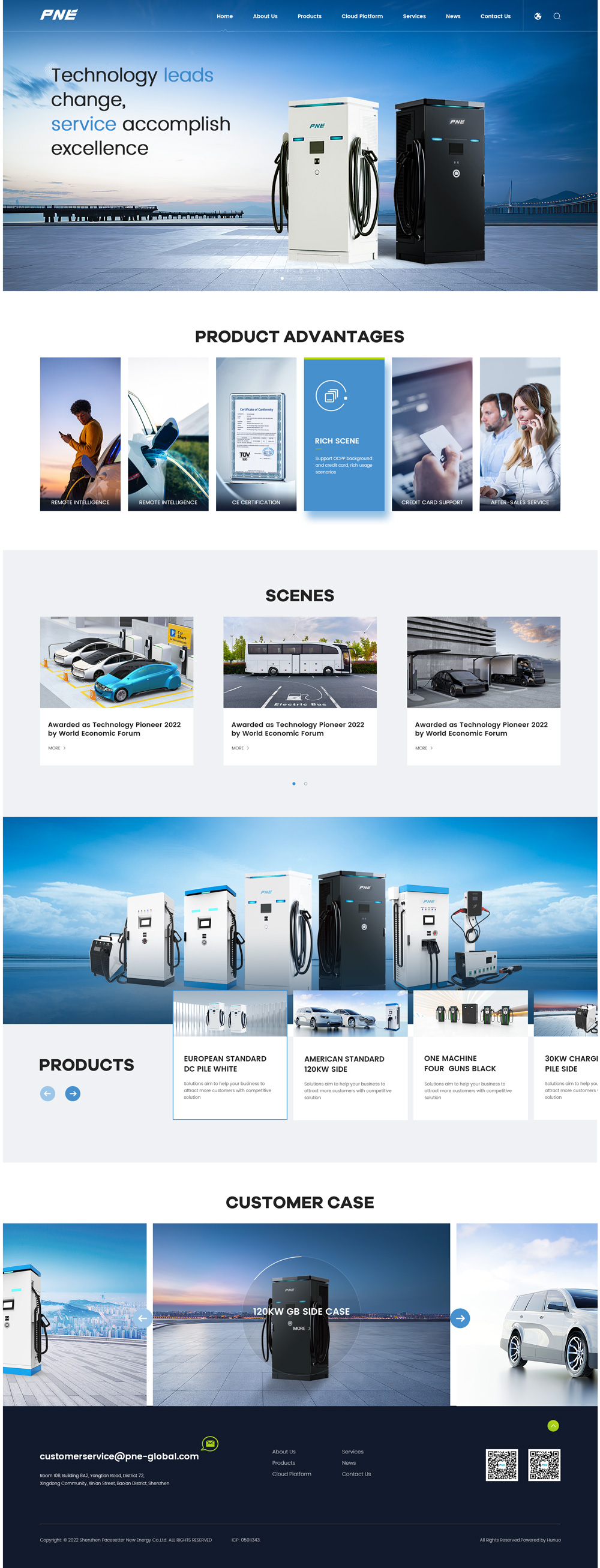 Shenzhen Pacesetter New Energy Co., Ltd. (PNE) is a technology company focusing on the research, development, production and supporting services of charging piles. Just like the name of the company, PNE has always adhered to the concept of " Technology leads change, service accomplish excellence ", continuously launched new products that lead the change of charging solutions, and provided customers with professional, reliable and cost-effective technical solutions and services.