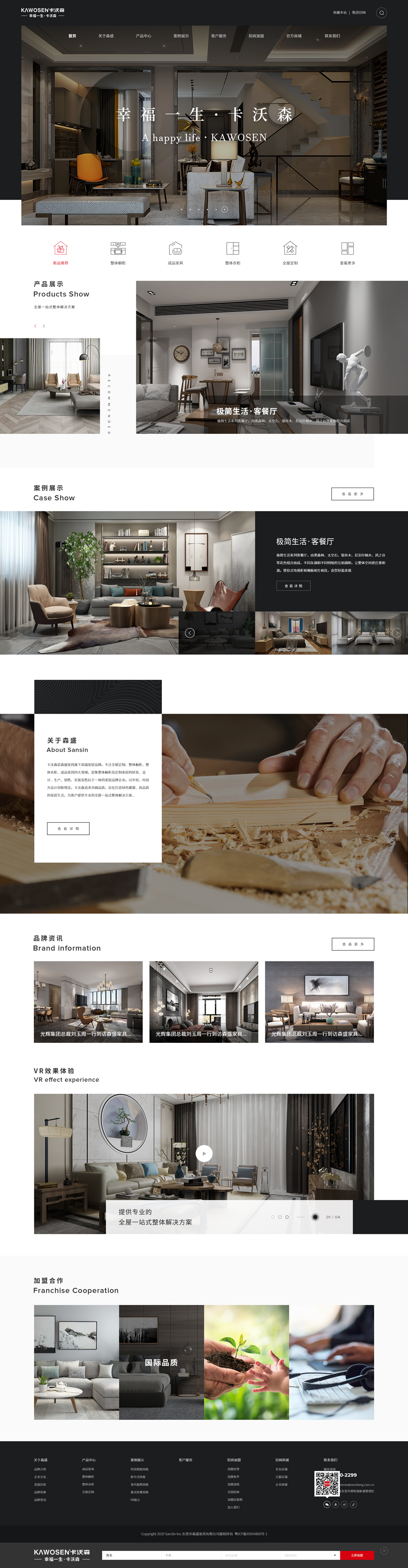 卡沃森總部森盛集團探索大家居行業之路30年,從未止步。以推動成品家具、定制家居變革為己任,以打造幸福家居生活為使命,將藝術、科技、智能、實用完美融于家居生活。卡沃森強大的國際、國內研發設計團隊不斷突破創新,以原創、時尚、前衛、國際化為立足之本,引領行業發展趨勢和潮流。卡沃森最新產品意式輕奢、現代極簡、時尚簡歐、新中式四大風格八大系列隆重上市,為客戶打造幸福家居生活全方位保駕護航。