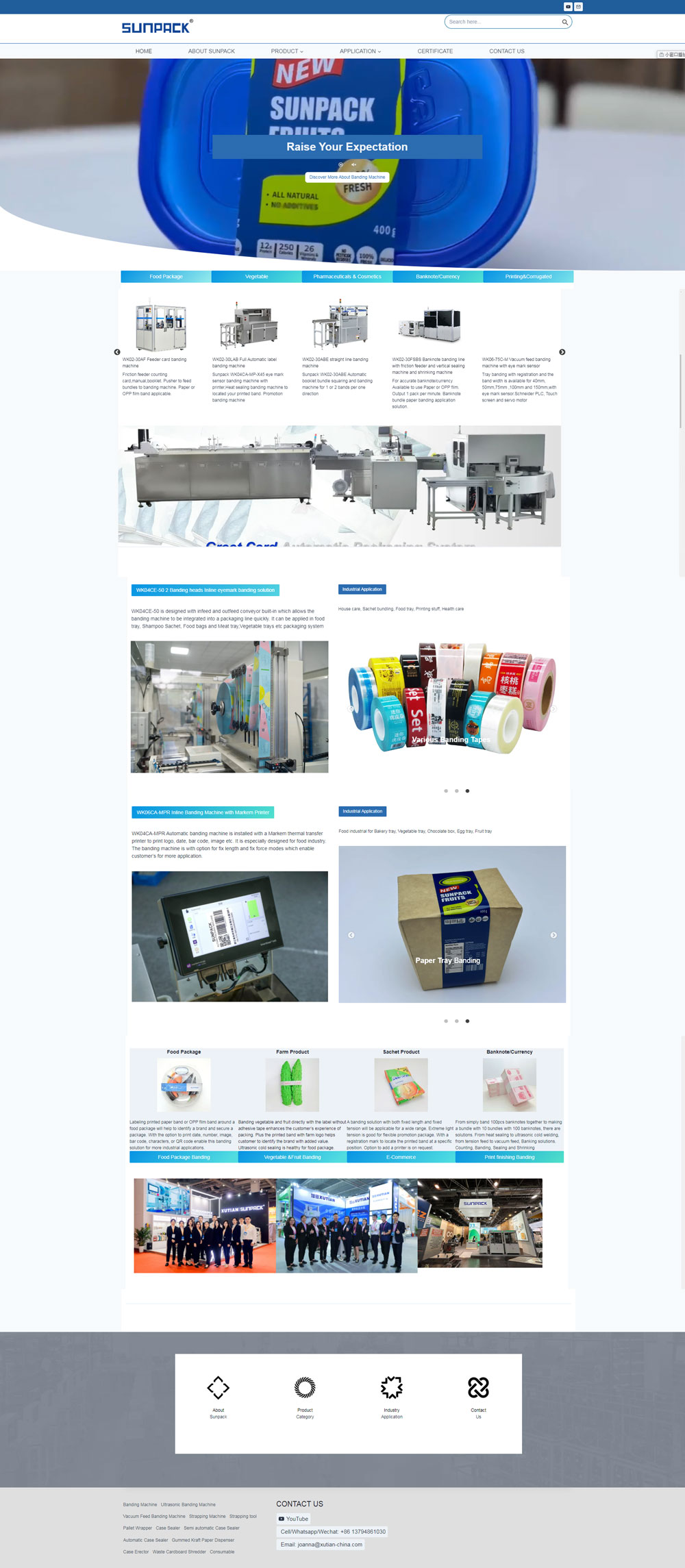 Xutian (Sunpack)is a group company with 3 branches located in Taizhou, Dongguan and Shanghai. We dedicate to end of line package development for years. We have more than 30 staff in our RND department . We carry banding machine, strapping machine, pallet wrapper, case sealer and manual strapping tool in our range.