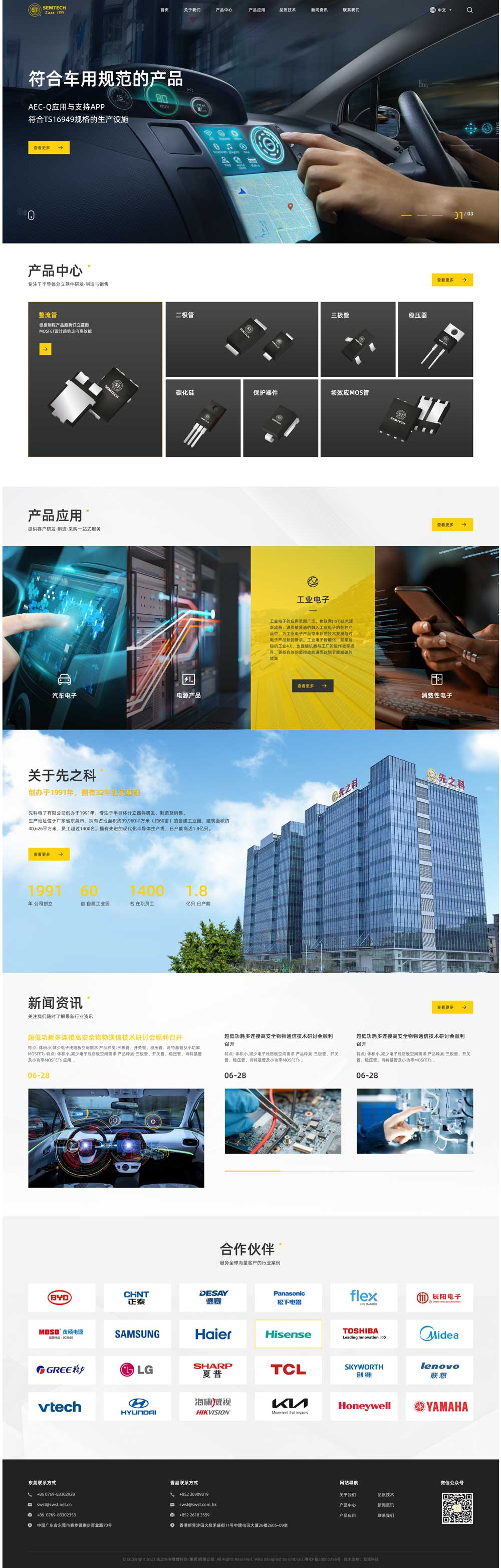 先之科半導體科技(東莞)有限公司為全球領先的半導體制造商,專注于半導體分立器件研發、制造及銷售。生產地址位于廣東省東莞市,擁有的工業園占地面積約40,000平方米(約60畝),建筑面超過60,000平方米,員工超過1400名,其中包括130位電子工程師,旗下先科電子有限公司業務遍布歐洲及亞洲超過三十年。先之科半導體科技(東莞)有限公司于2020年榮獲“國家高新技術企業”稱號,2022年上榜成為東莞市“倍增計劃”試點企業、廣東省專精特新中小企業、廣東省創新型中小企業、廣東省大功率半導體器件封裝工程技術研究中心。2023年榮獲國家級專精特新“小巨人”稱號。