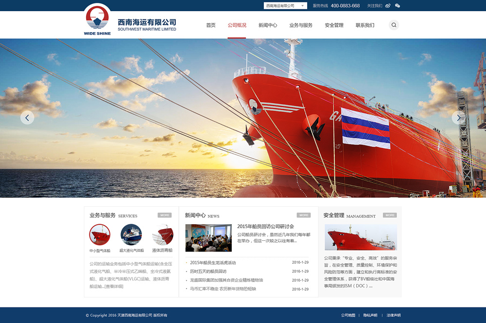 西南海運是宏光集團下屬專業(yè)從事特種運輸船經(jīng)營和船舶管理的事業(yè)部,包括一個中小型氣體運輸船隊、一個超大型氣體運輸船隊、一個液體瀝青運輸船隊。 我們自1991年步入國際船運市場,先后經(jīng)營管理過多用途船、雜貨船、集裝箱船,為步入特種船經(jīng)營打下了基礎(chǔ)。 我們自2002年進入液化氣船經(jīng)營領(lǐng)域,致力于普...