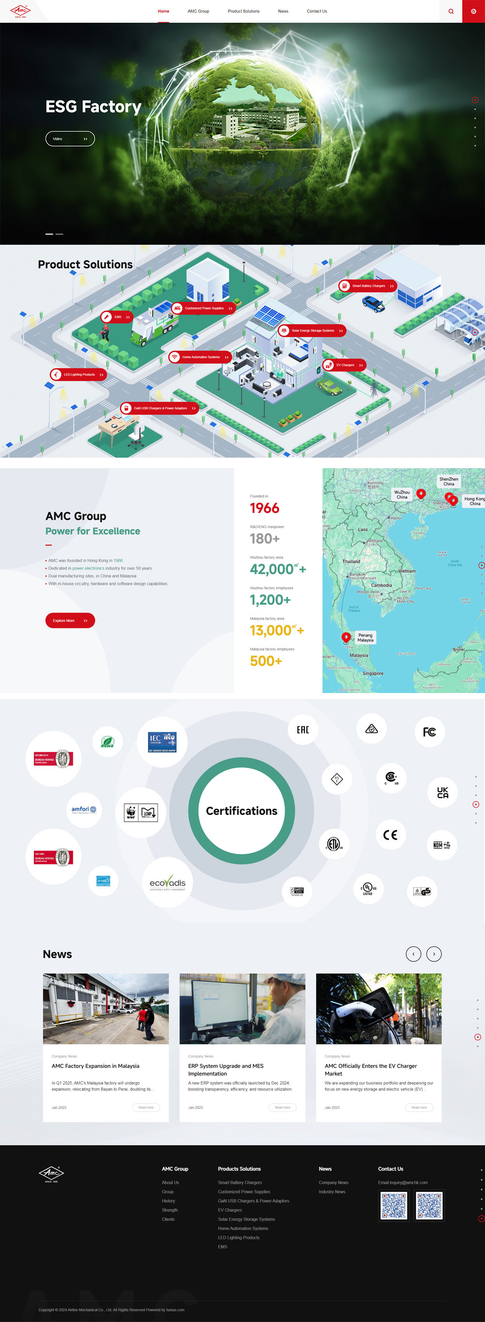 雅士電業成立于1966年,是少數超過58年致力于電源類電子產品研發、生產的電子企業之一。作為行業的先鋒,AMC于中國的改革開放之初就在大陸建廠,是最早在中國大陸開設工廠的香港投資者之一。如今,雅士已經從線圈制造商發展至專業電源和智能家居系統制造企業,并擁有多家國內外現代化工廠。為了進一步擴張業務,我們利用電源技術與合作伙伴共同發展了多元新產品,引領我們進入儲能、電動汽車充電器、電動工具、LED照明和物聯網市場。隨著公司不斷發展壯大,2017年成立雅士電業(廣西)有限公司,籌備建造集團最新一代工廠,于2021年正式投入生產。2020年,為了拓展更多元化的市場,對日益激烈的全球化競爭和關稅政策,成立了馬來西亞檳城工廠。