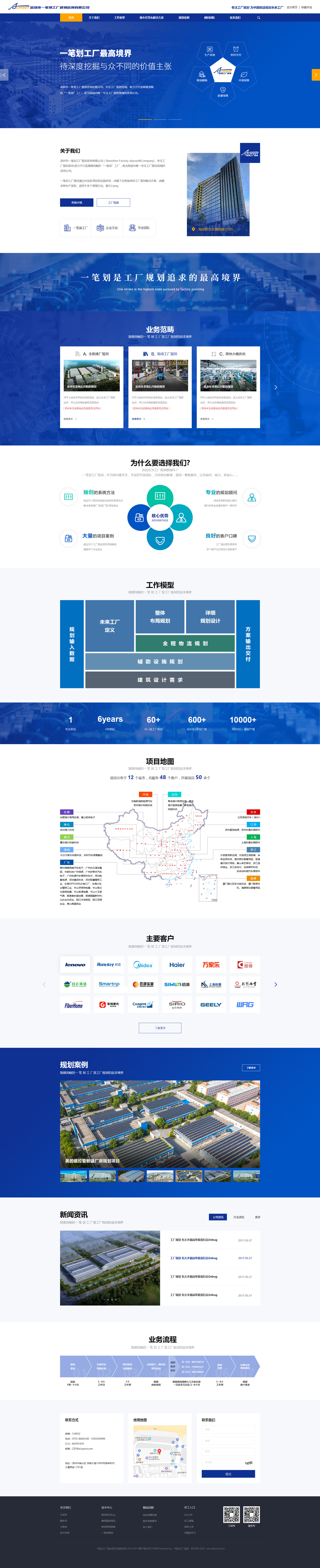 深圳市一筆劃工廠規劃咨詢有限公司成立于2014年,注冊資金1000萬元,專注工廠規劃咨詢,公司位于深圳前海,開展工廠規劃項目50余個,分布于十二個省市,致力于為中國制造規劃未來工廠。一筆劃工廠規劃通過不斷的實踐總結,創建了業界獨有的工廠規劃流程,其規劃范疇:大到工業園區規劃,中到生產車間規劃,細到生產線體模式設計及工位排布、倉儲物流規劃、系統仿真、外加輔助設施規劃等;
