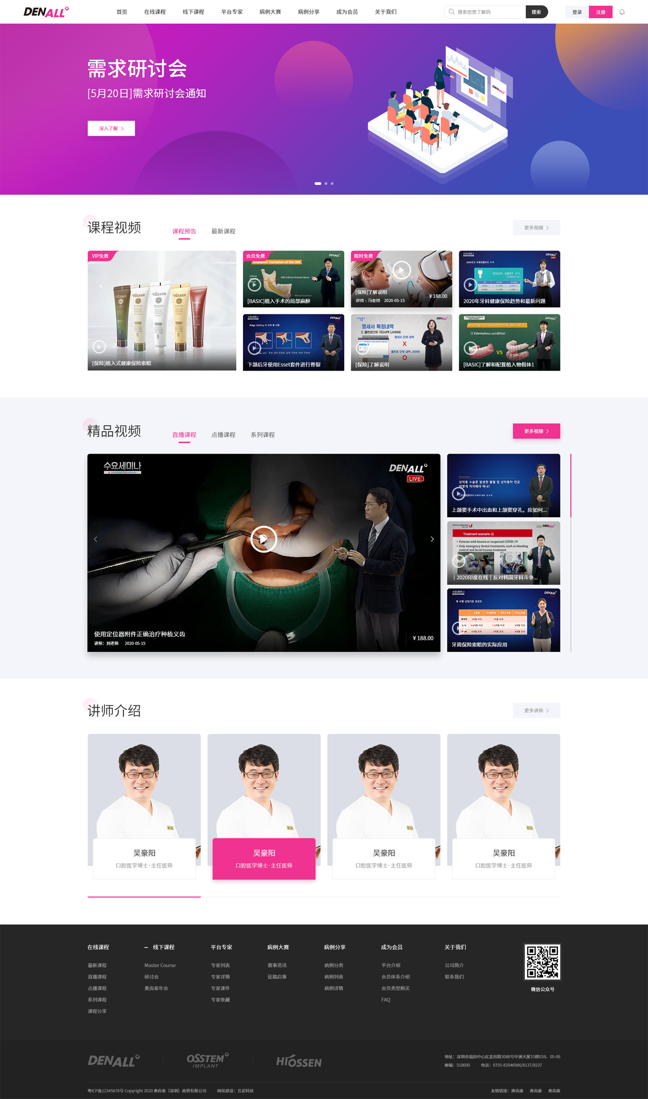作為專業的在線教育平臺, DenALL聘請國內外知名口腔種植專家講師,專為線上學習模式設計課程 。為了達到最好的教學效果, DenALL還組建了一支專業的網絡直播團隊,根據每一個課程的內容特點定制適合的制作方案,以用戶學習體驗為核心,打造高質量學術標準的在線課程。