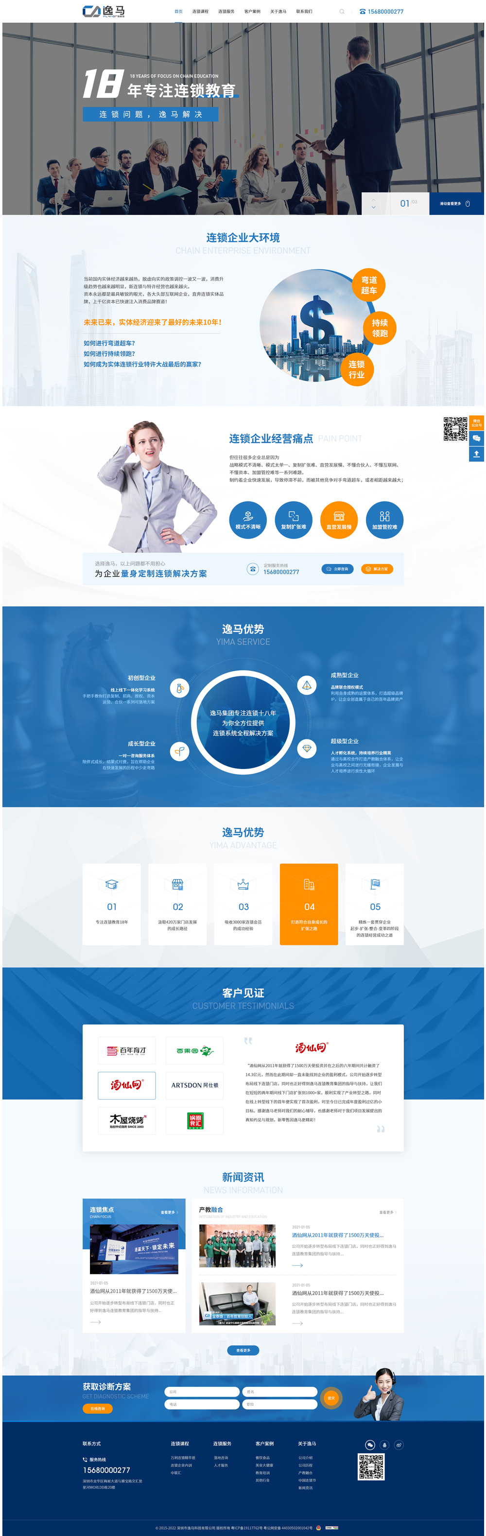 逸馬連鎖教育集團創立于2004年,集團下設逸馬科技、逸馬品牌連鎖(產教融合)、阿拉丁品牌授權、逸馬云連鎖、馬幫門店合伙人、快馬特許招商、逸馬投資、學到連鎖、逸馬歐洲、步步領先等機構,是集研究、教育、咨詢、培訓、投資于一體的全球領先的連鎖產業服務平臺,18年出版連鎖專業研究書籍25套,服務了420萬家連鎖門店,6萬家連鎖學員,服務企業總營收達到3萬億元,為聯想、蘇寧、創維、怡亞通、三雄極光、雅迪、酒仙網、百果園、木屋燒烤、鴻翔藥業、鍋圈等近3萬家企業服務的實戰經驗,創立了中國連鎖全程運營系統的權威標準及連鎖第三次浪潮的數字化連鎖大系統。旗下有深圳、上海、北京、成都、武漢、香港、東京、愛爾蘭等30余家分公司、逸馬連鎖大學、雙創基地及孵化中心,貼身服務中聯匯企業,孵化優秀連鎖人才,提供就業創業平臺,推動連鎖產業創新升級,構建世界級的全網連鎖產業生態圈。