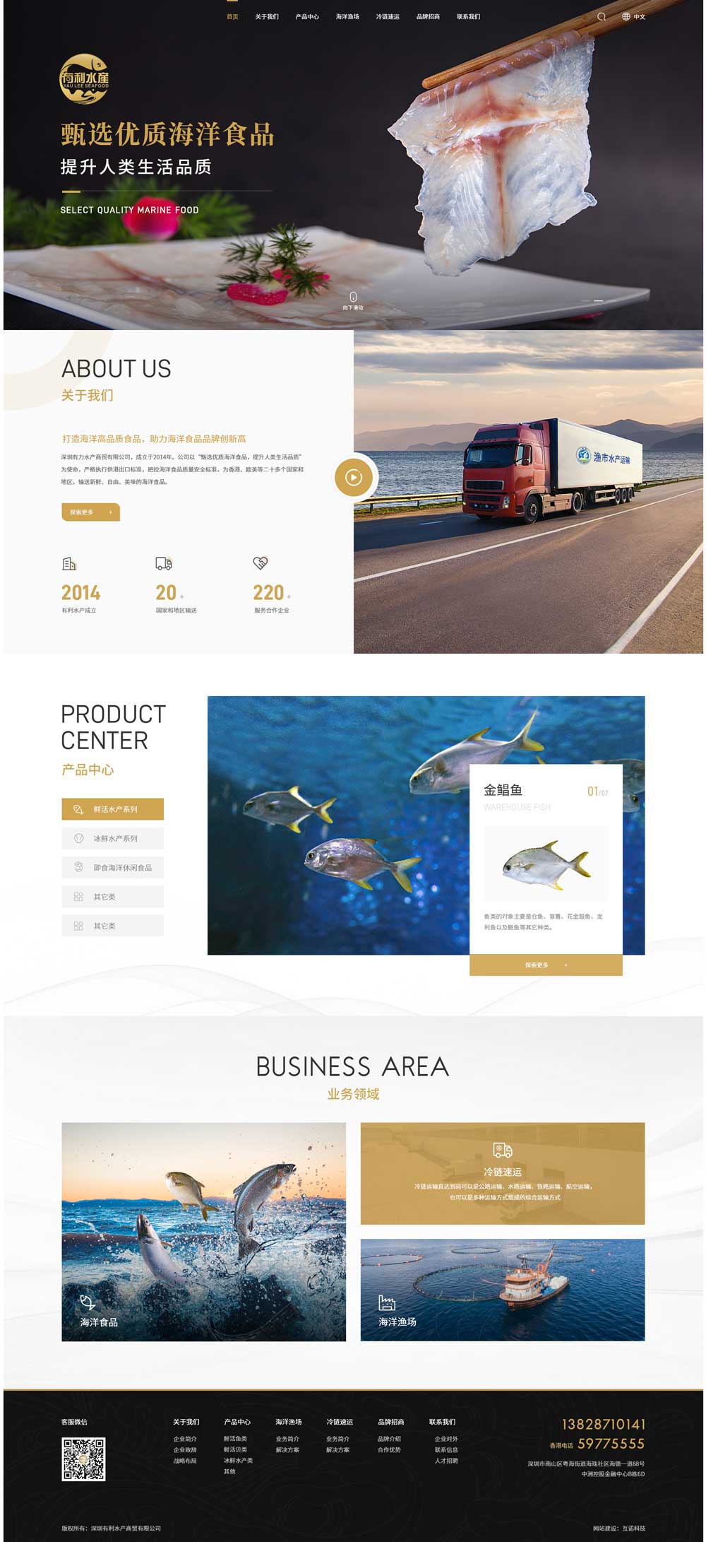 深圳有利水產商貿有限公司,成立于2014年。公司位于:粵港澳大灣區深圳前海,依托于得天獨厚的地理位置優勢,積極響應國家“一帶一路”政策方針,貫徹執行《粵港澳大灣區發展規劃綱要》,以“打造海洋高品質食品,助力海洋食品品牌創新高”為使命,從事水產供港貿易,嚴格執行供港出口標準,把控海洋食品質量安全標準,為香港提供綠色、安全、新鮮的海洋水產品,保障民生。未來將致力于整合國內優質水產資源,用科技改變生活,打造香港水產智能化服務平臺,完美實現線下線上相結合,助力國內海洋水產品、海洋加工食品品牌走進香港,走向世界。