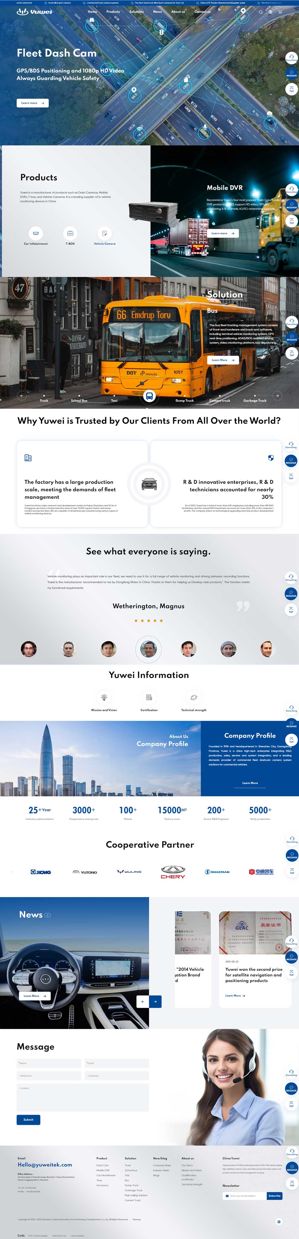 Yuwei was established in 1998 and is headquartered in Shenzhen, Guangdong Province. It is a national high-tech enterprise that integrates research and development, production, sales, service, and system integration. yuwei is a leading provider of intelligent comprehensive solutions for commercial vehicle information systems in China.