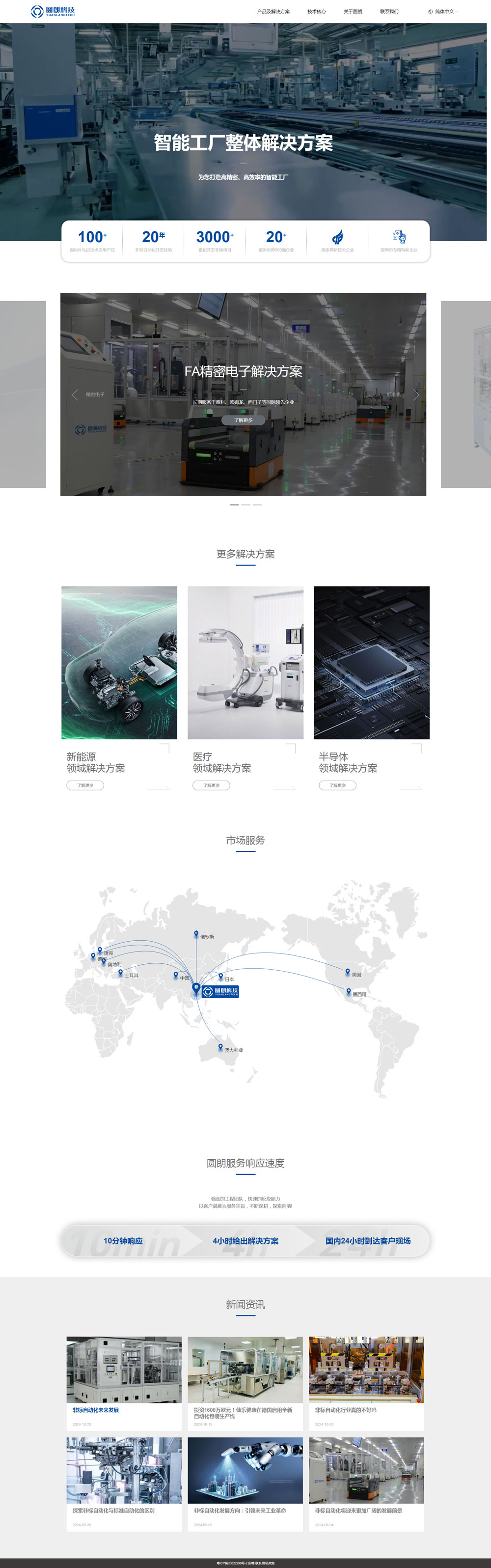 圓朗智能是一家人工智能領域的高科技企業,為客戶提供智能化、數字化的一站式智能工廠方案;定制非標準自動化設備,全自動生產線,智能工廠,智能物流全廠方案從量規化到落地的完整服務。