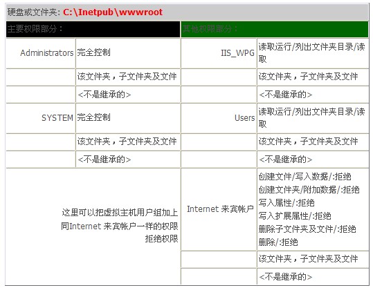 這里著重談需要的權限,也就是最終文件夾或硬盤需要的權限,可以防御各種木馬入侵,提權攻擊,跨站攻擊等。本實例經過多次試驗,安全性能很好,服務器基本沒有被木馬威脅的擔憂了。
