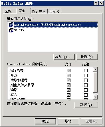 先說關于系統的NTFS磁盤權限設置,大家可能看得都多了,但是2003服務器有些細節地方需要注意的,我看很多文章都沒寫完全。